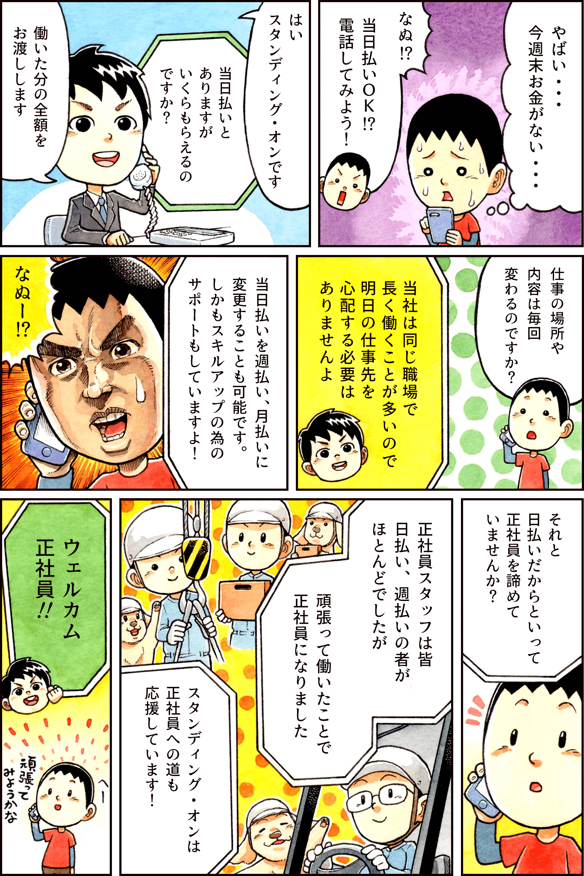 頑張っているスタッフと当社スタッフを応援してね!!日払いから月給へ!!正社員目指して頑張ろう!!